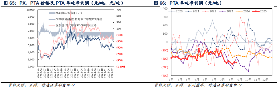 PTA:受加工费水平偏低影响,装置减停现象增多,市场整体呈现去库状态,价格有所上涨。目前PTA现货周均价格在4727.86(+41.43)元/吨,行业平均单吨净利润在-243.06(-8.06)元/吨,开工率72.90%(-3.10pct) ,PTA社会流通库存至81.48(-5.93)万吨。