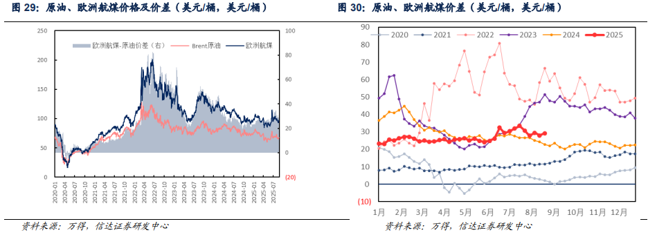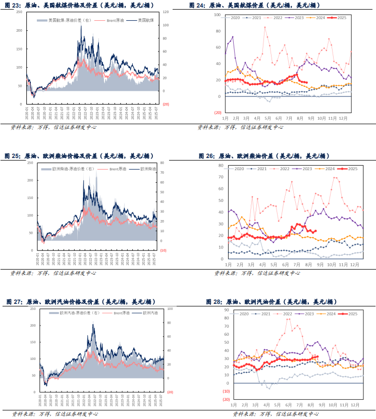 原油:截至2025年8月22日当周,油价震荡小涨。本周市场聚焦俄乌局势相关谈判,市场持谨慎态度;另一方面,美俄会谈不确定性增加市场风险溢价,加之市场预期美联储9月降息,提振油市,叠加上周美国原油和汽油库存下降对油价形成支撑,多重利多因素影响下,本周国际油价小幅回升。2025年8月22日布伦特、WTI原油价格分别为67.73、63.66美元/桶,较2025年8月15日分别+1.88、+0.86美元/桶。